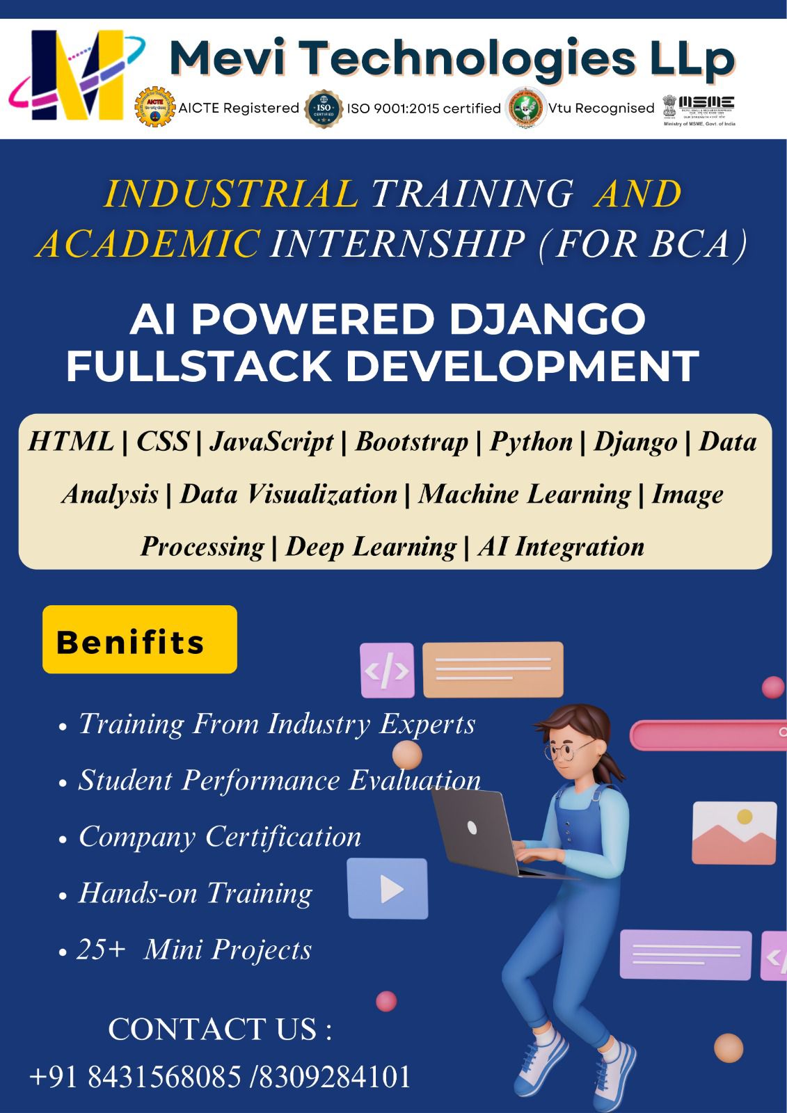 At Mevi Technologies LLP, we strongly believe that real learning happens only when students apply concepts with their own hands. Thatβs why every Mevi program is designed to be hands-on, interactive, and project-driven.